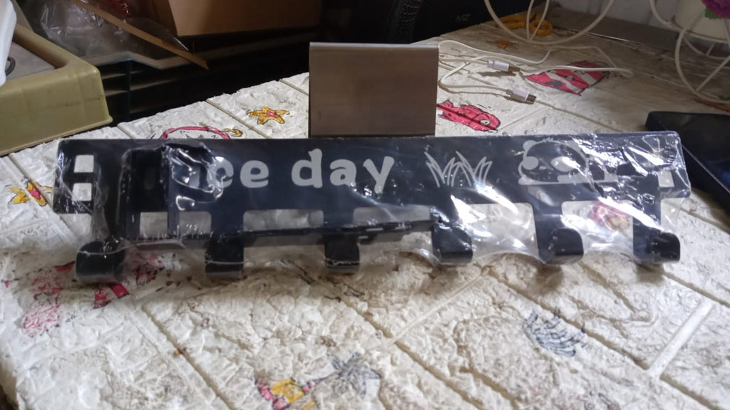 8536 Heavy-Duty Carbon Steel Cartoon Nice Day Over Door Hook Hanger Rack, Towel Hanger, Removable Door Hook, Coat, Scarf, Cloths Hanger (1 pc / 6 Hook)