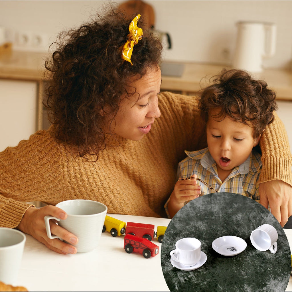 • Kids Kitchen Pretend play miniature toys set of 15 items for girls and boys includes dining table too. Your child will be also like to drink milk, coffee and juice in this mug.