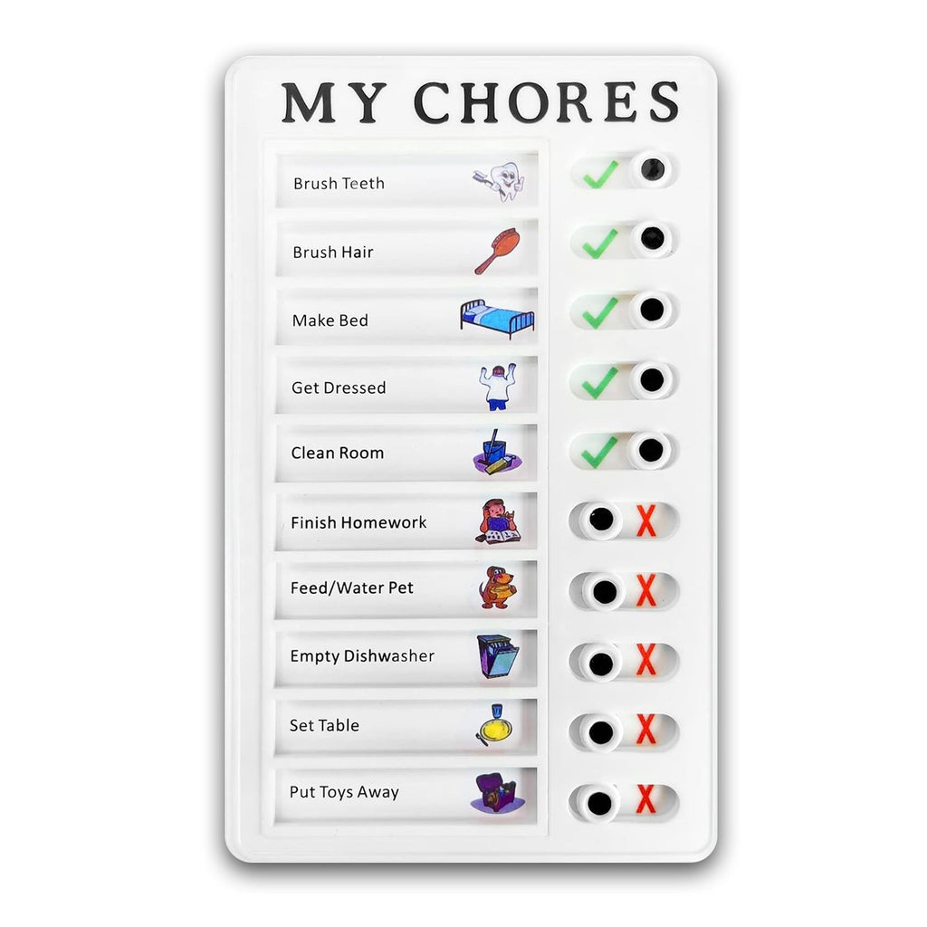 • my chores portable memo board in the package, which lists the housework tasks you should complete in a day, such as finish homework, fed/ water pet, brush teeth, etc.; You can hang it on the wall or put it in a prominent place to remind you to complete the day's housework\