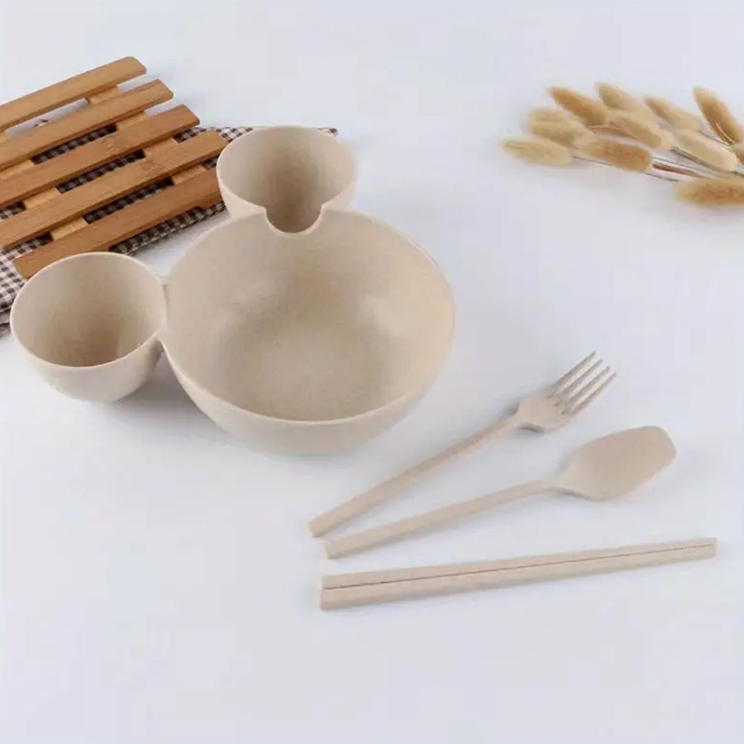 - Great for babies and children to have fun while eating but without the mess. Made of wheat straw material & food grade food PP, durable and safety to use.