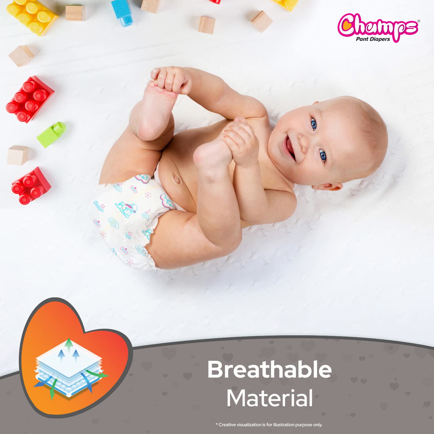 Champs Pant Diapers are specially designed to provide care for your baby's growth.