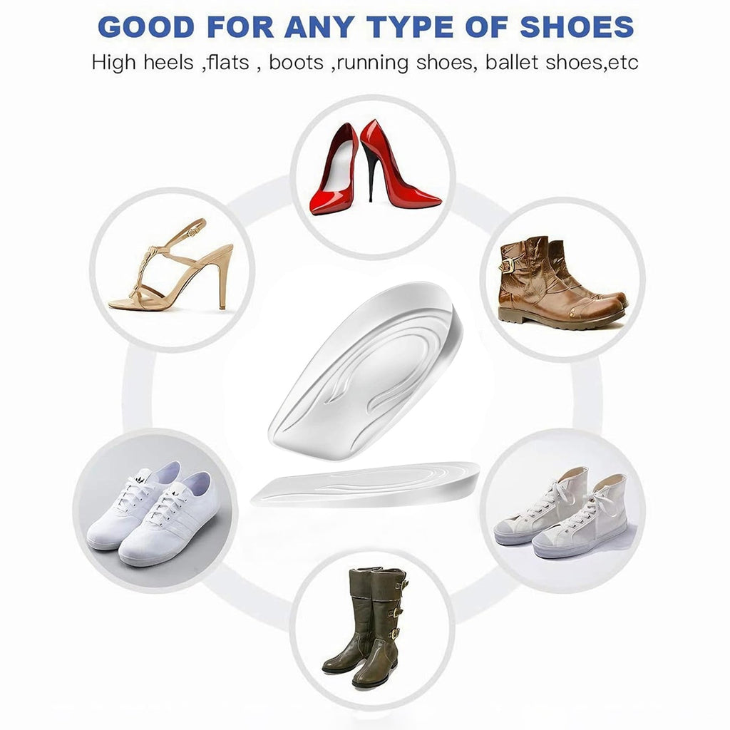 • RELIABLE MATERIALS: The insole is made of transparent silicone, soft, flexible, slip-resistant, and shock absorbent. Great for both men and women. Therefore, it is resistant to deformation and breakage even after long time use; excellent durability.