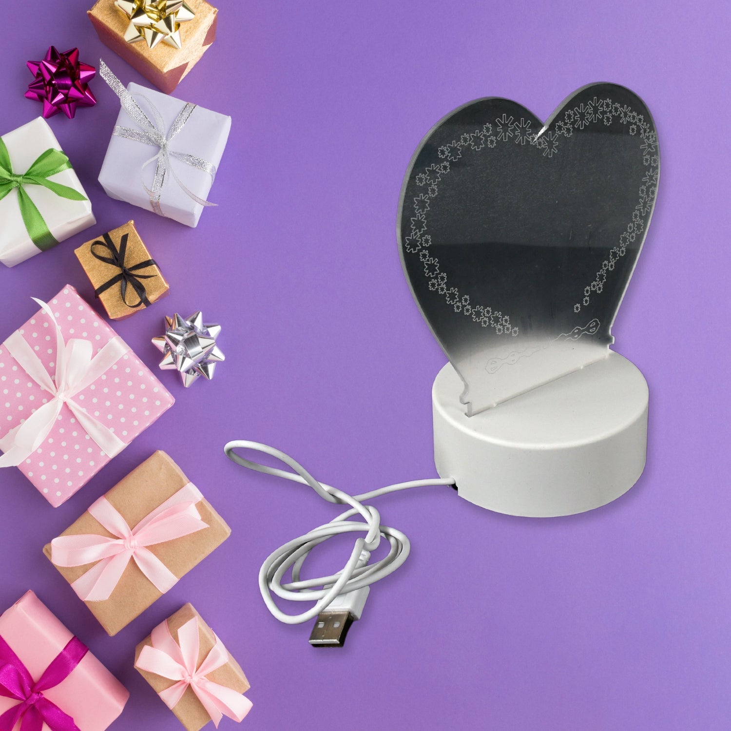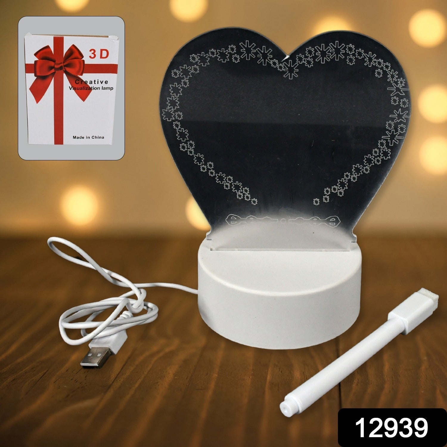 12939 Creative Visualization Lamp 3 D Acrylic Decorative Lamp for Creative Keeps Notes Drawing Table Lamp for Home Decor / Bedroom / Gift / Office Decoration / Erasable Board (Heart-Shape / 1 pc)