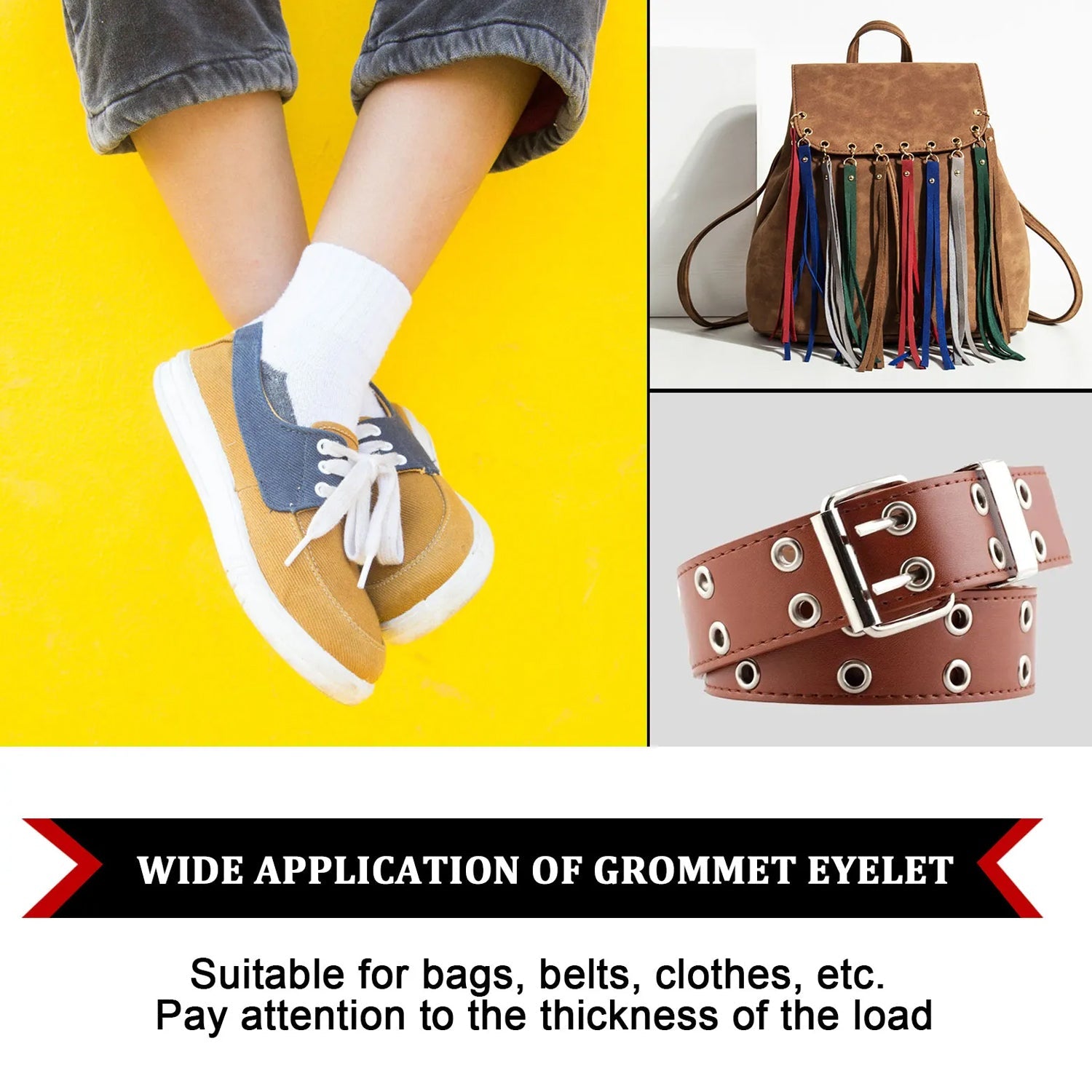 Grommet Setting Tool with 25 PCS Gold Eyelets Grommets Steel Hole Punch Setter Kit for Leather, Canvas, All Fabrics Men and Women Clothes, Shoes, Belts, Bags, Crafts
