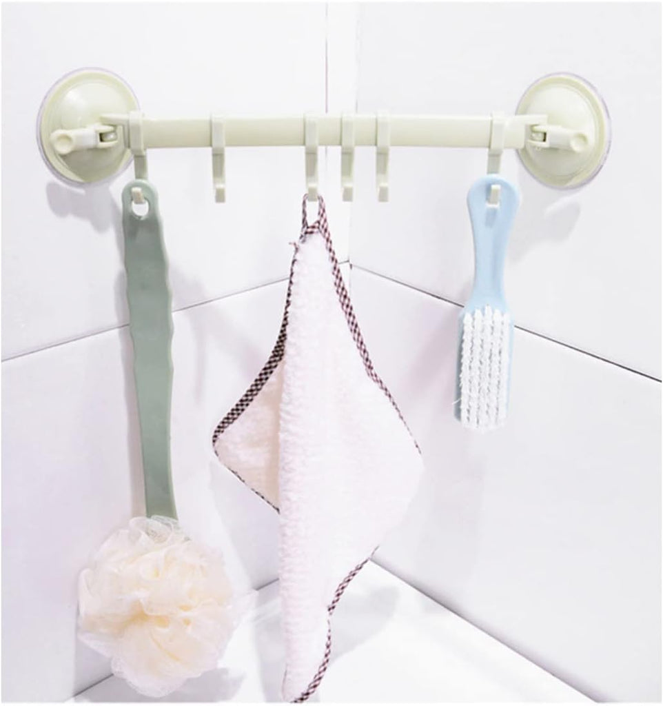 - Dimension: Wall mounted,13 inch long plastic towel hanger with 6 moveable hooks, suction cup diameter 2.8 inch.