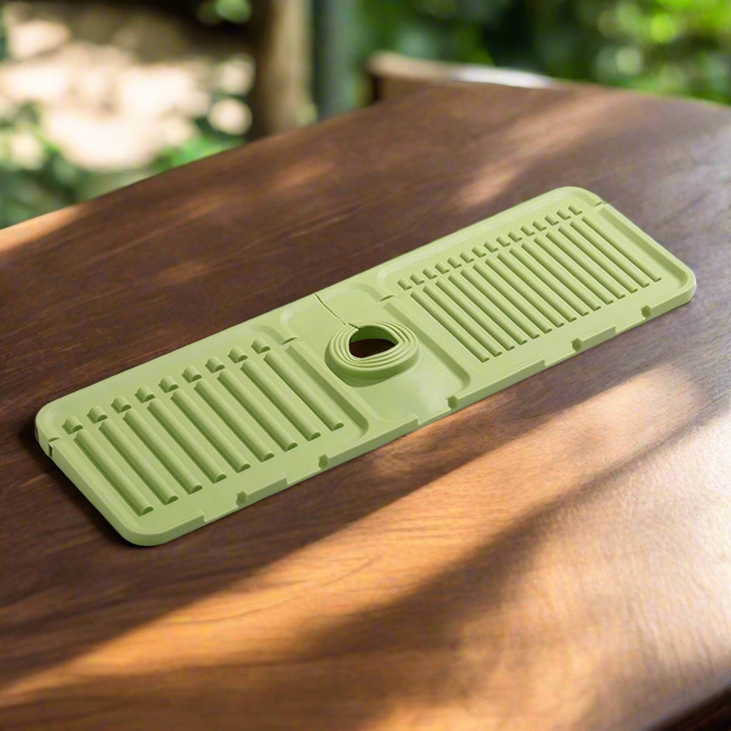 - A sink water splash guard mat specially designed for faucets, the silicone sink faucet splash guard is a labor-saving way to upgrade your kitchen sink. Our silicone faucet splash guard has a raised lip to drain water to the sink. Keep the countertop clean and dry.