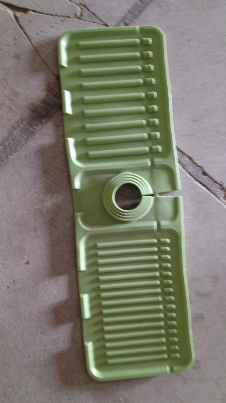 - The silicone faucet mat is made of silicone, soft and reliable, reusable, won't scratch your plate, easy to use. Our faucet splash catcher is designed with drainage, so you don't need to worry about standing water on your mat or countertop.