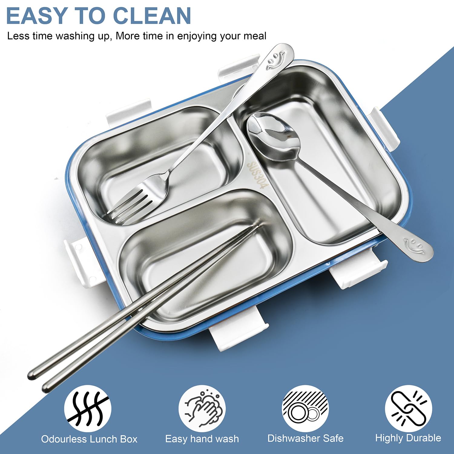 - LEAK-PROOF AND EASY TO CLEAN: Each layer has a separate lid with the sealed silicone ring that prevents the spillage of sauces, salads, and soups; Say goodbye to lunch boxes that leak or spills all over your bag! Plus, they? Re easy to clean and sanitize. It's ideal microwavable bento box and reusable bento box.