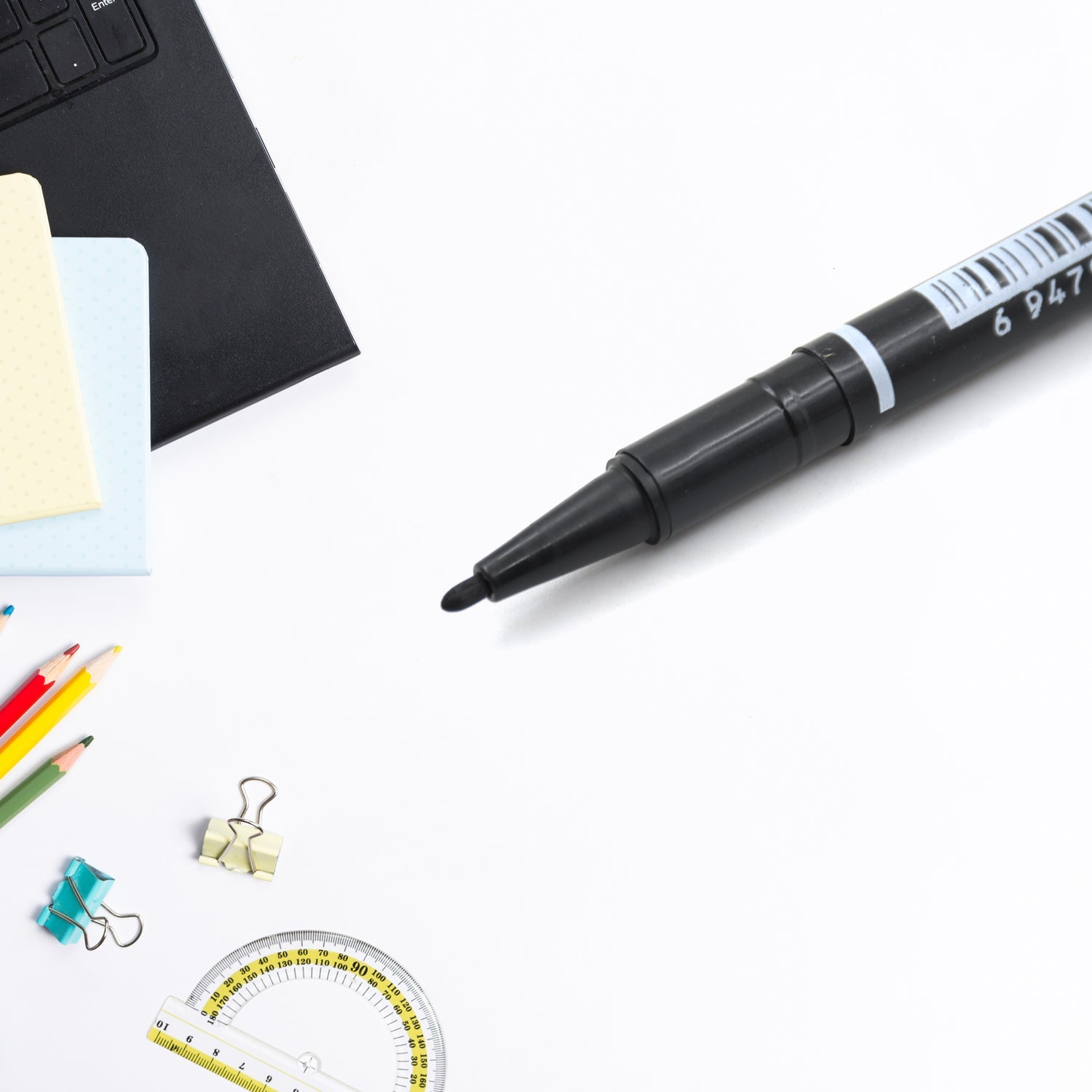 2Sided pen & Marker Office Products School, Office Supplies Stationery Marker Pen, Double Marker Black Ink Waterproof Marking Pen for Students (1 Pc)