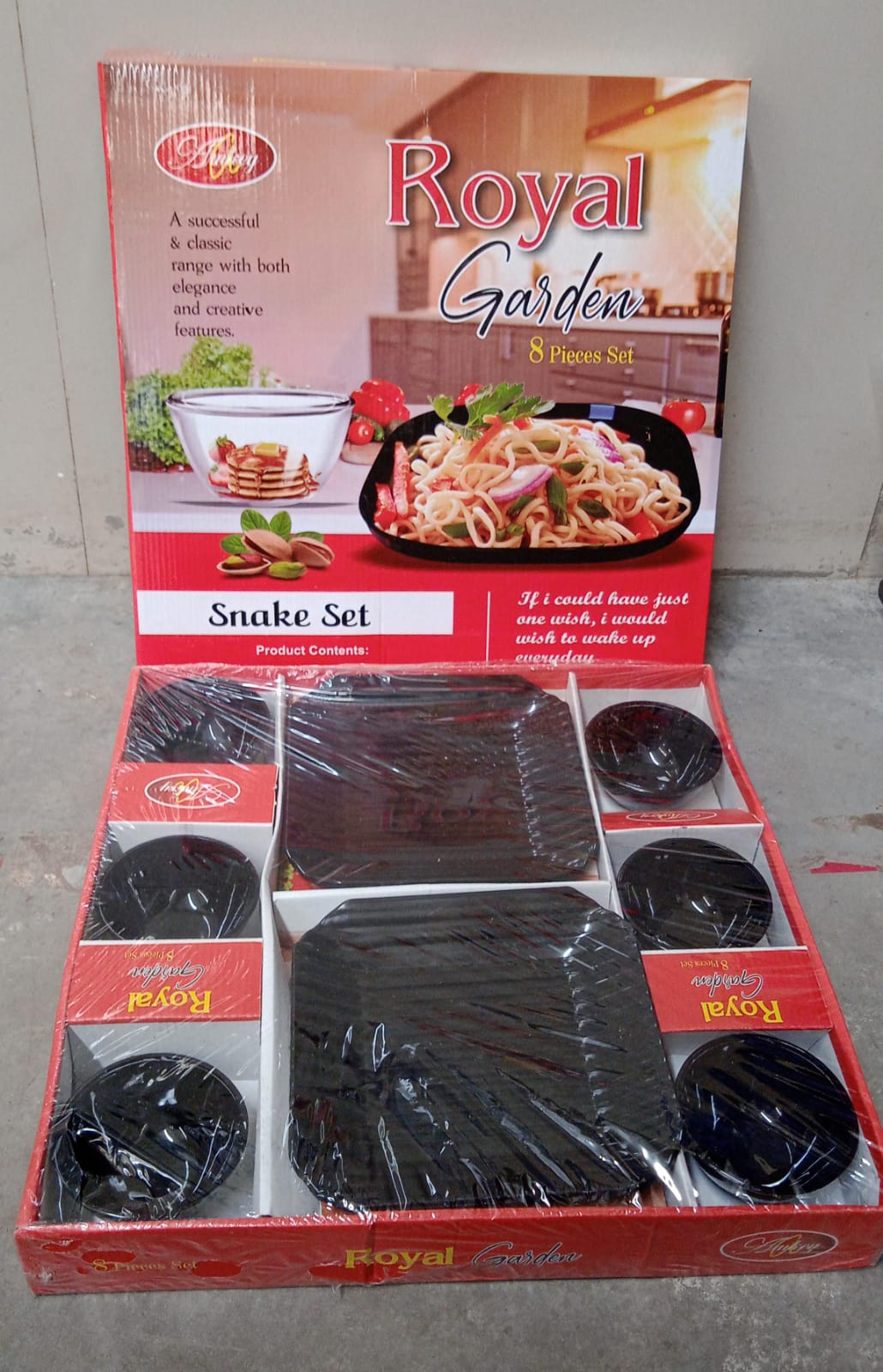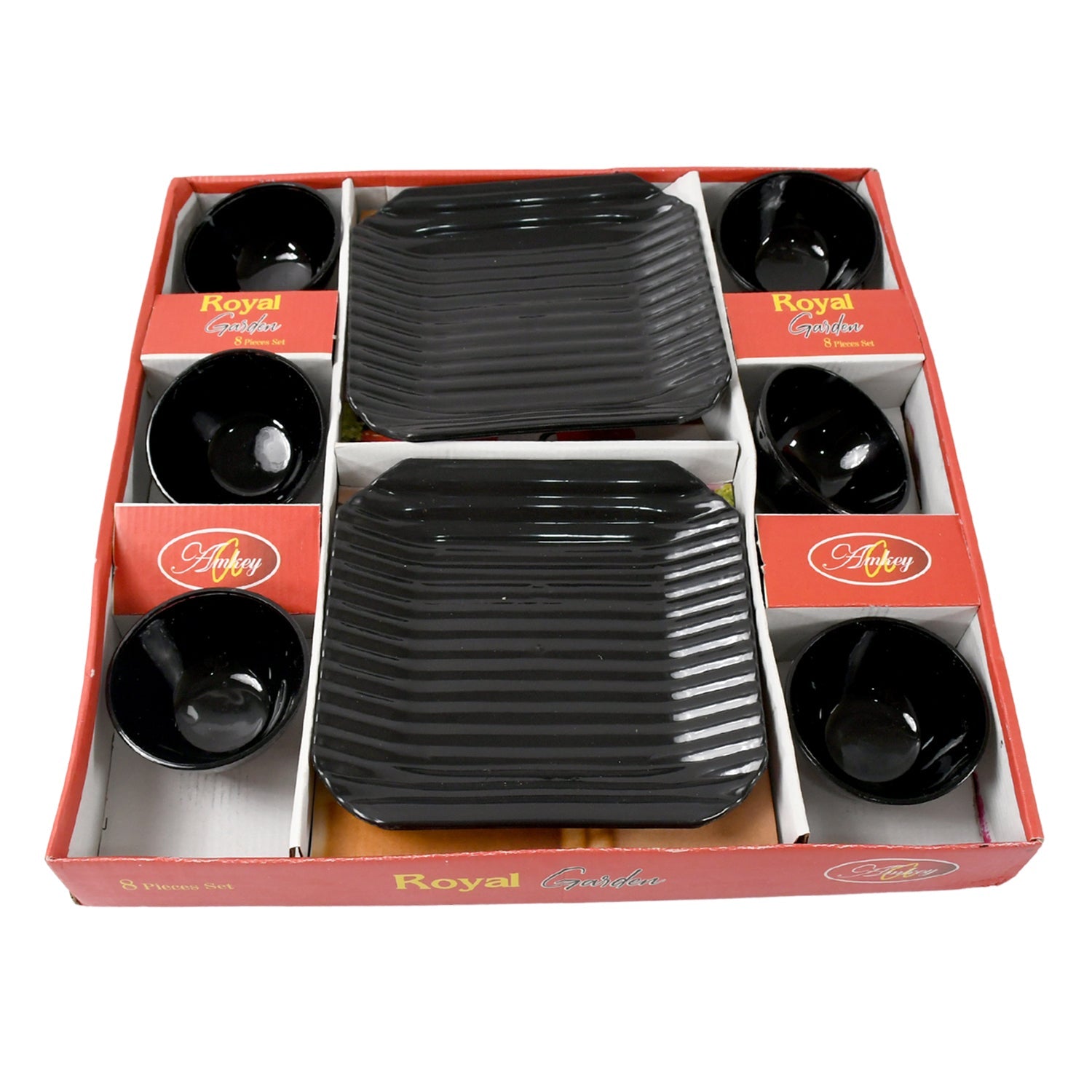 Royal Garden Round Ceramic Bowl With Plastic Square shape Serving platter Portable, Lightweight Breakfast, Serving Bowl | Highly Durable Material | Ideal for Rice, Pasta, Desserts Home & Kitchen Serving Bowl & platter (8 Pcs set)