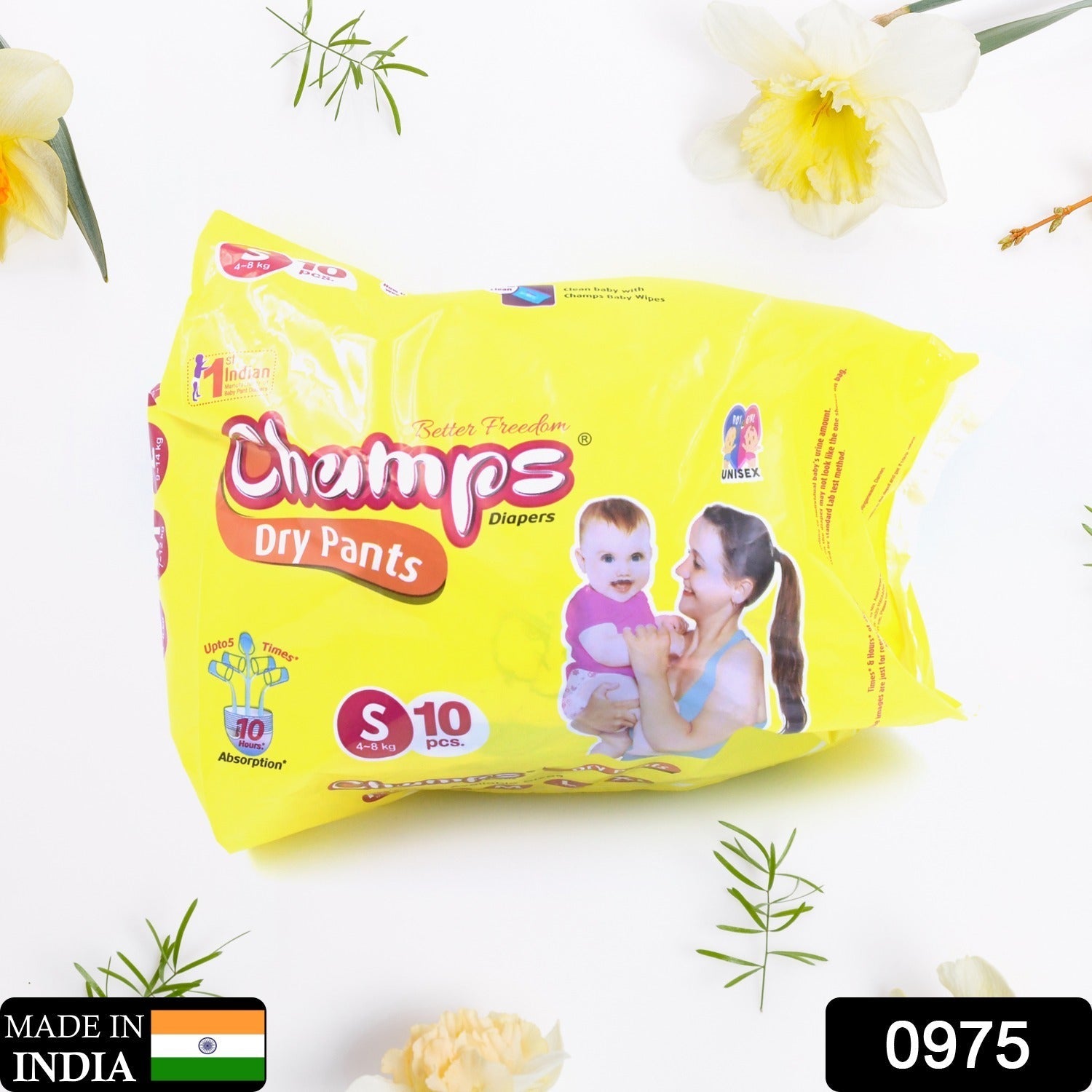 Champs Travel Diapers (Small, 10 Pcs): Leakproof, Soft & Dry, Baby Diaper Pants