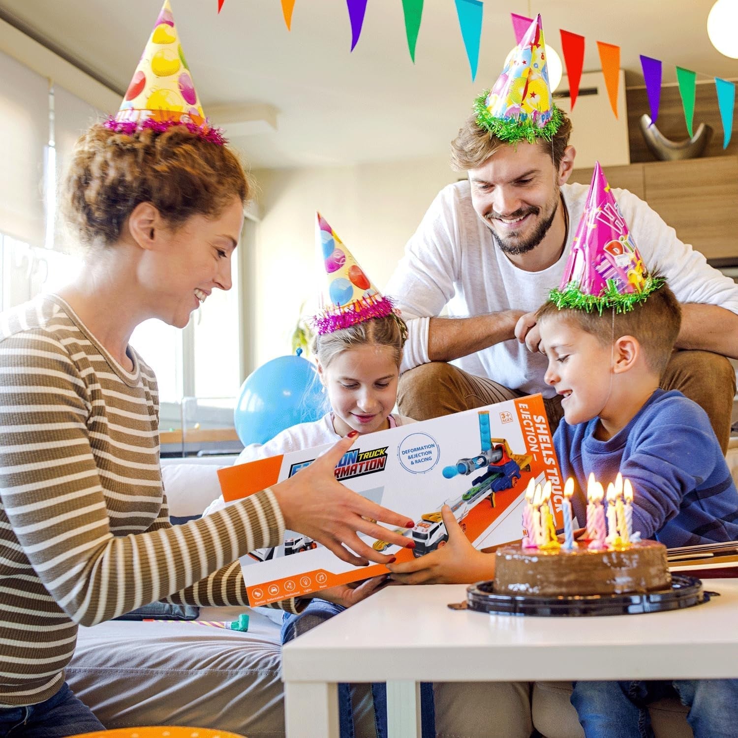 - 【Ejection Truck Set Toys】: this truck toys include 1 large ejection transport truck, 2 ejection alloy racing cars, 4 soft & safe balls, a 360 degree launcher, and truck stickers. It is perfect toys for kids play with parents, brother, sister, cousin, and friends!